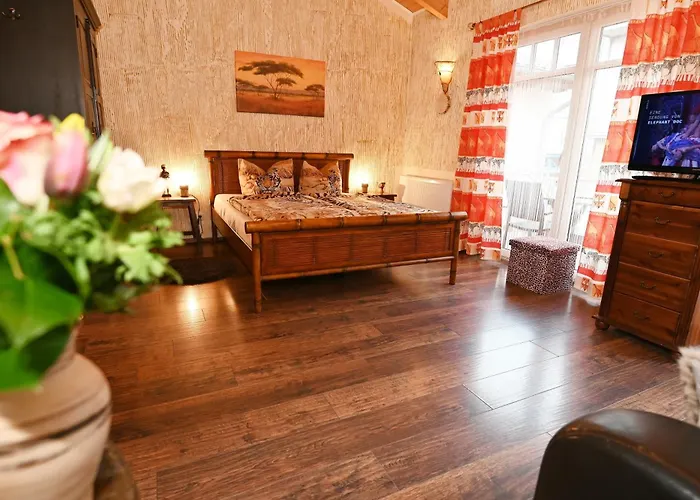 Das Appartement Afrika Rostock befindet sich in der Nähe von verschiedenen Attraktionen der Stadt: Kurpark Warnemünde liegt unter anderem circa 5 Gehminuten von hier entfernt. Die Gäste können den WLAN sowohl für geschäftliche als auch für private Zwecke nutzen.